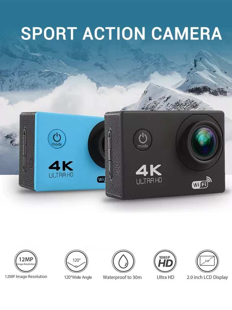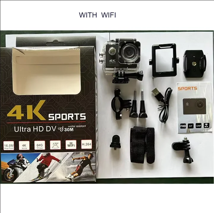 Action Camera 4K WiFi 2.0 Inch Touch Screen 140° Wide Angle Video Recording 30M Waterproof Bicycle Motorcycles Sports Cameras