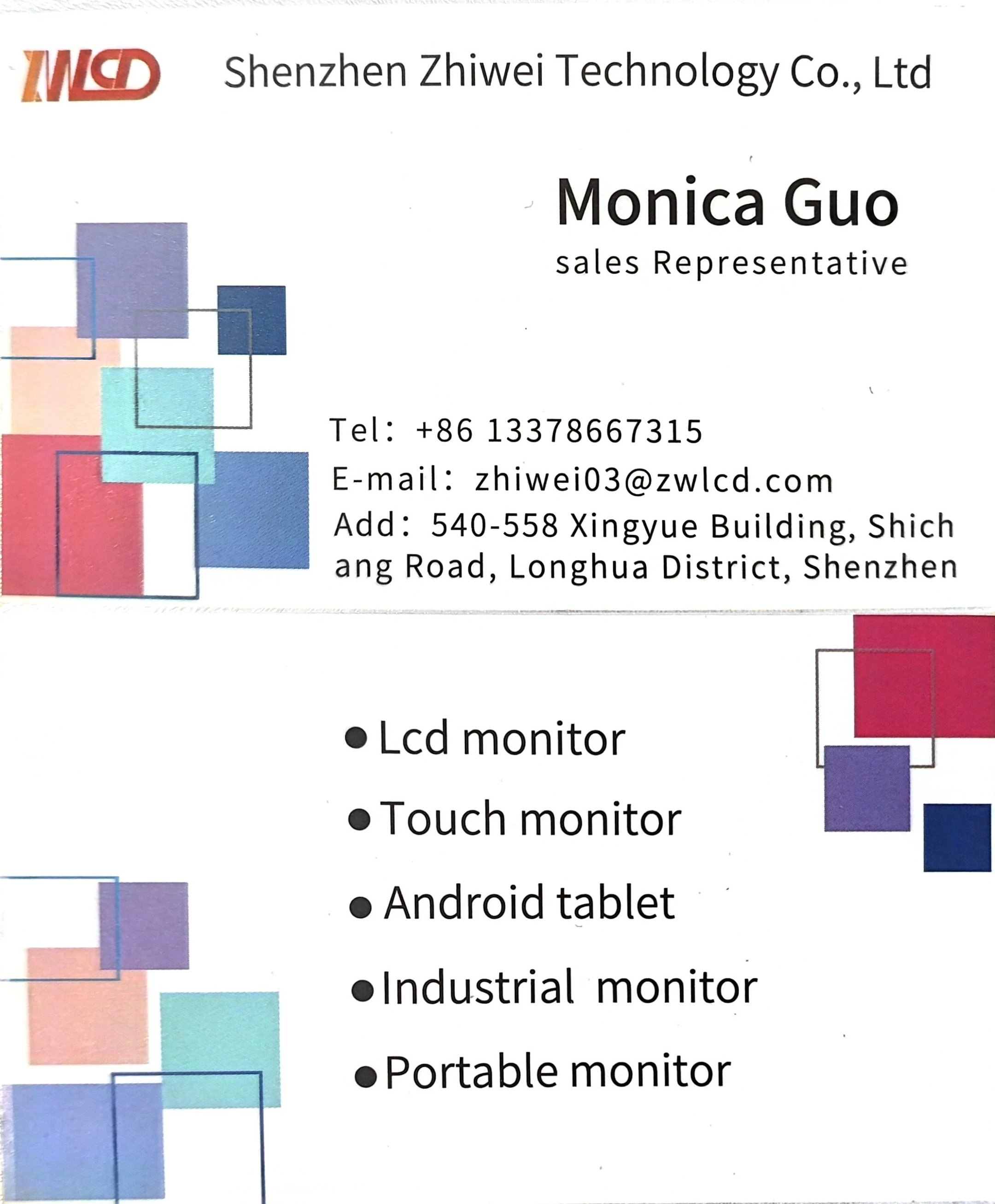 A:Our main product is LCD/LED Monitor, Touch screen monitor,CCTV monitor, AD player included with android tablet and digital photo frame.